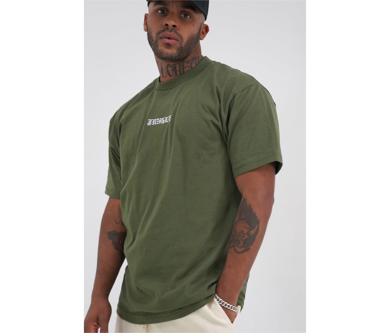 The Jungle T-Shirt is made with soft 100% cotton in a loose fit and features an embroidered "JUNGLE" on the front.
