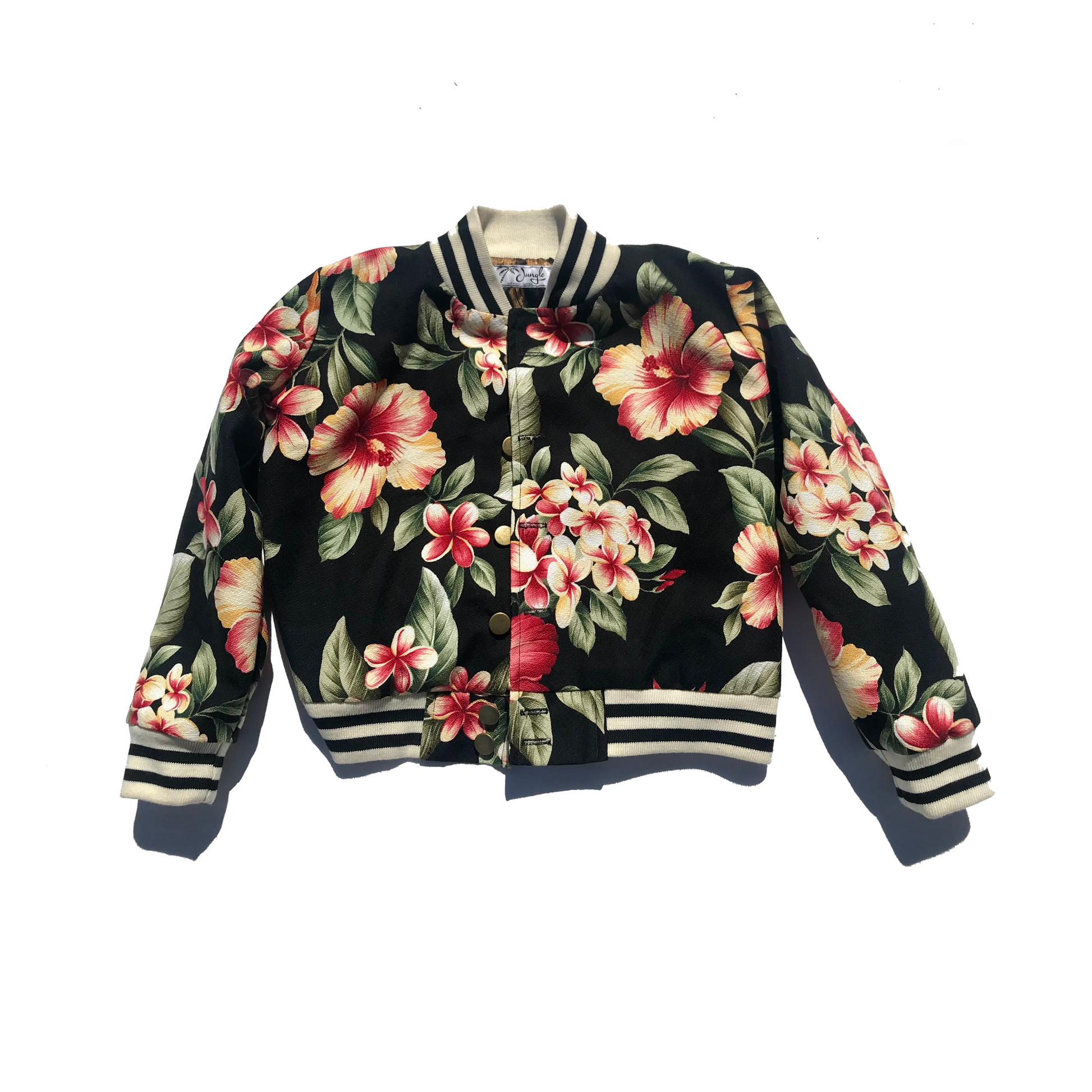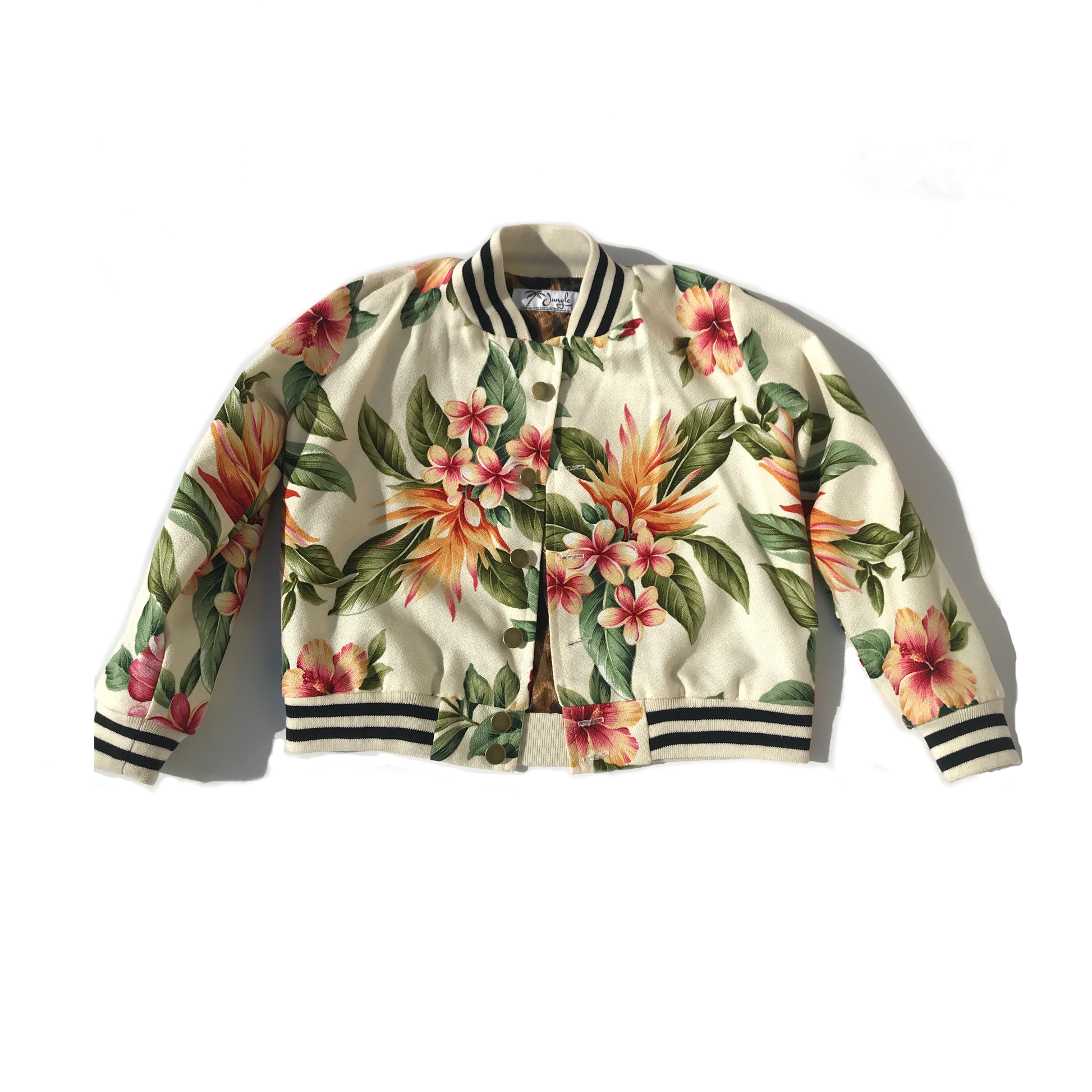 - 100% cotton woven Hawaiian barkcloth baseball jacket