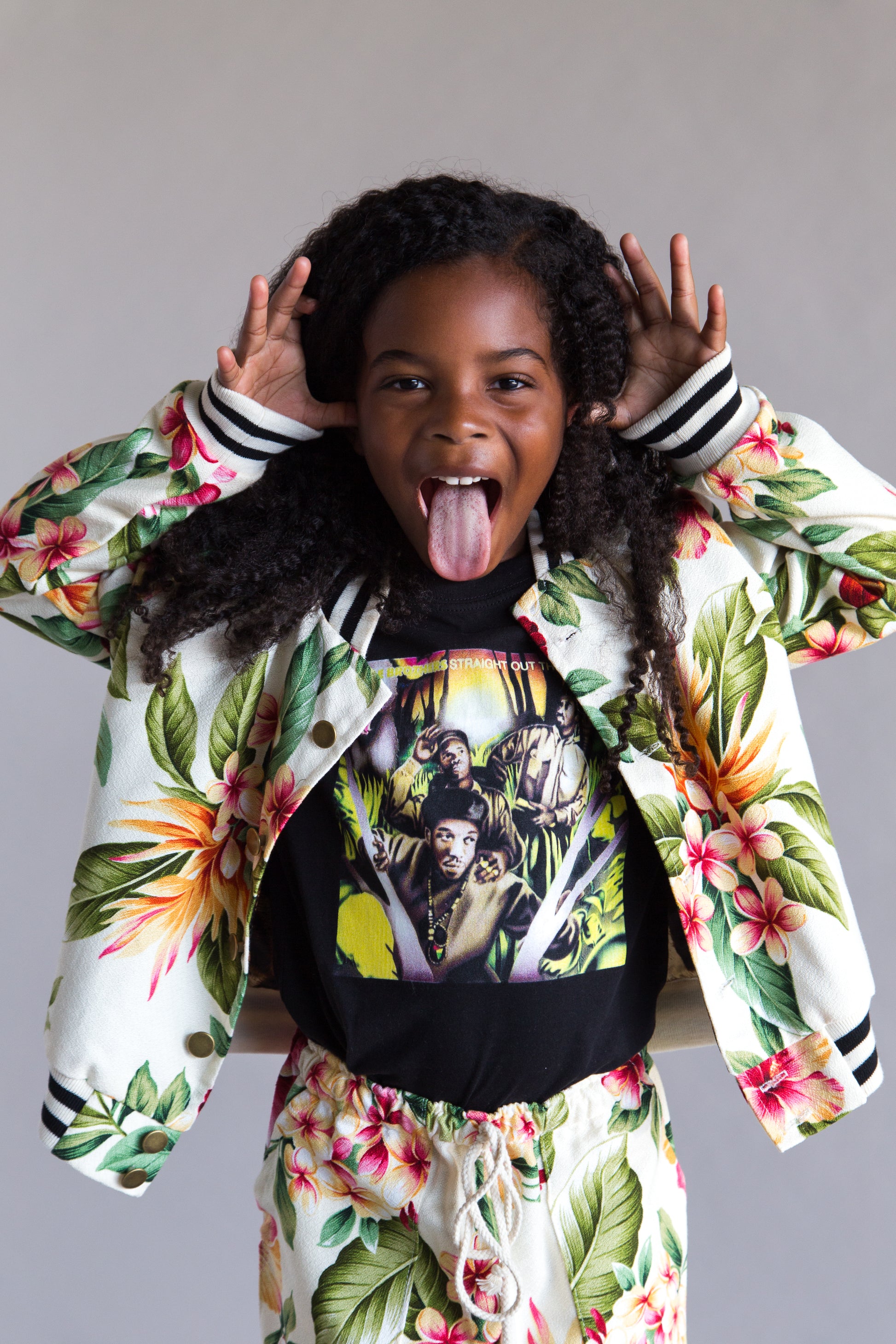 Amp up your kid's look with the Kainoa Baseball Jacket, complete with a button-up front and a striped collar, hemline, and sleeves.