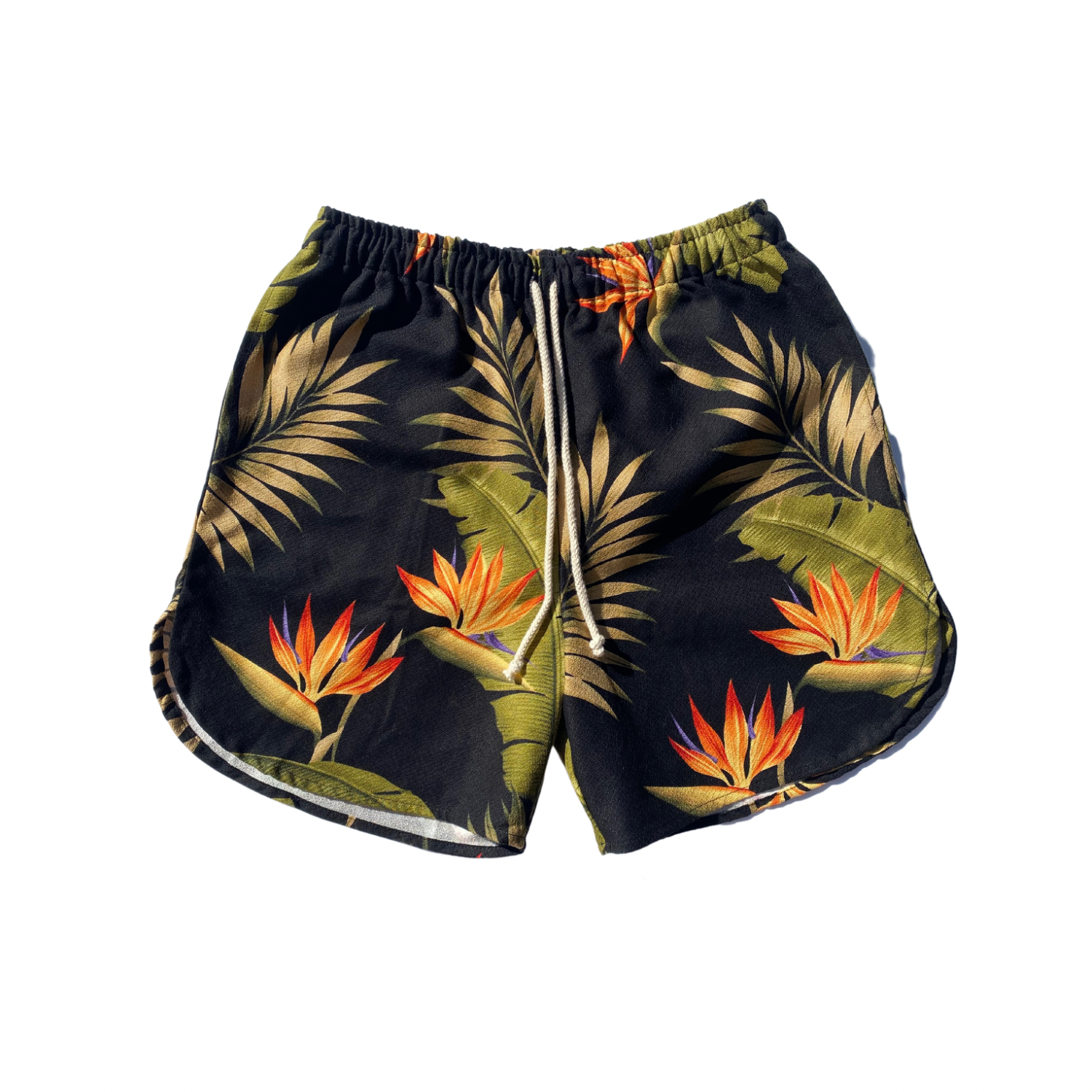Your go-to shorts in a luxe Hawaiian barkcloth, complete with a drawstring waist and mesh side pockets.