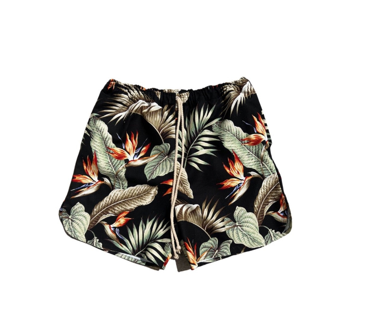 Your go-to shorts in a luxe Hawaiian barkcloth, complete with a drawstring waist and mesh side pockets.