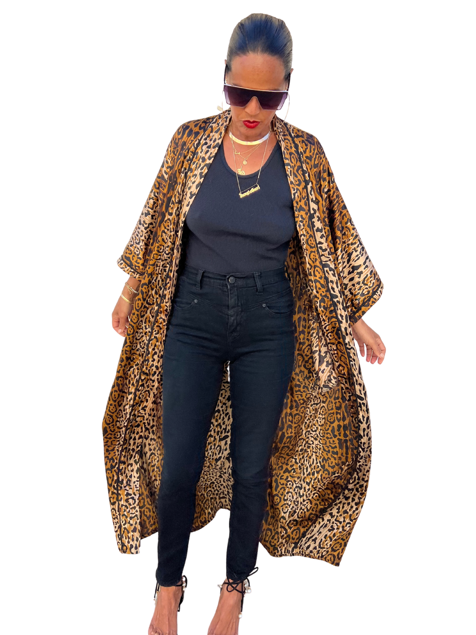 - Women's robe in leopard charmeuse